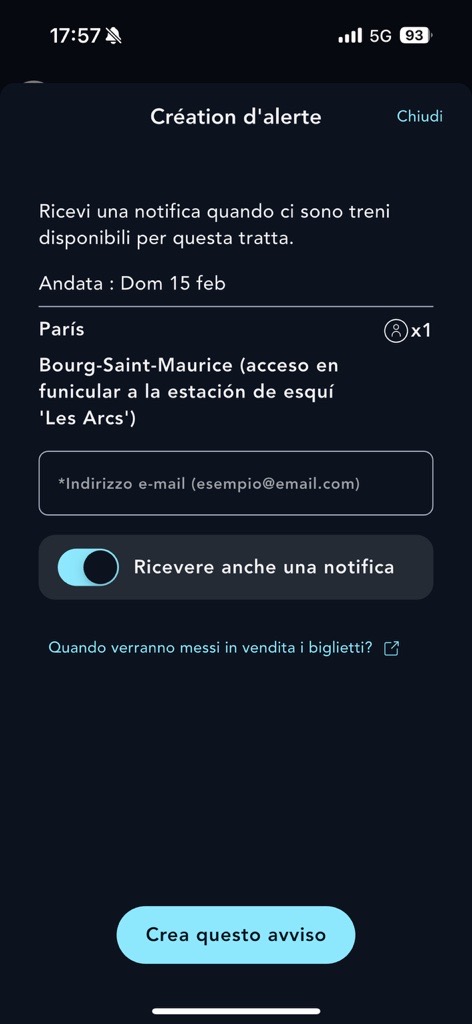 Vuoi essere avvisato per primo quando i tuoi biglietti del treno saranno in vendita?