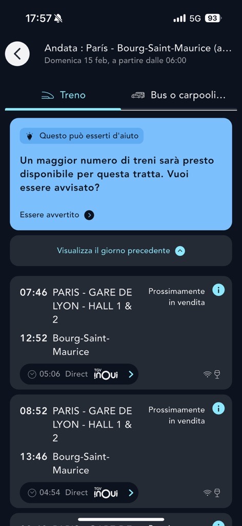 Puoi anche iscriverti all’avviso di prenotazione quando per il tuo itinerario i biglietti non sono ancora disponibili per la vendita.